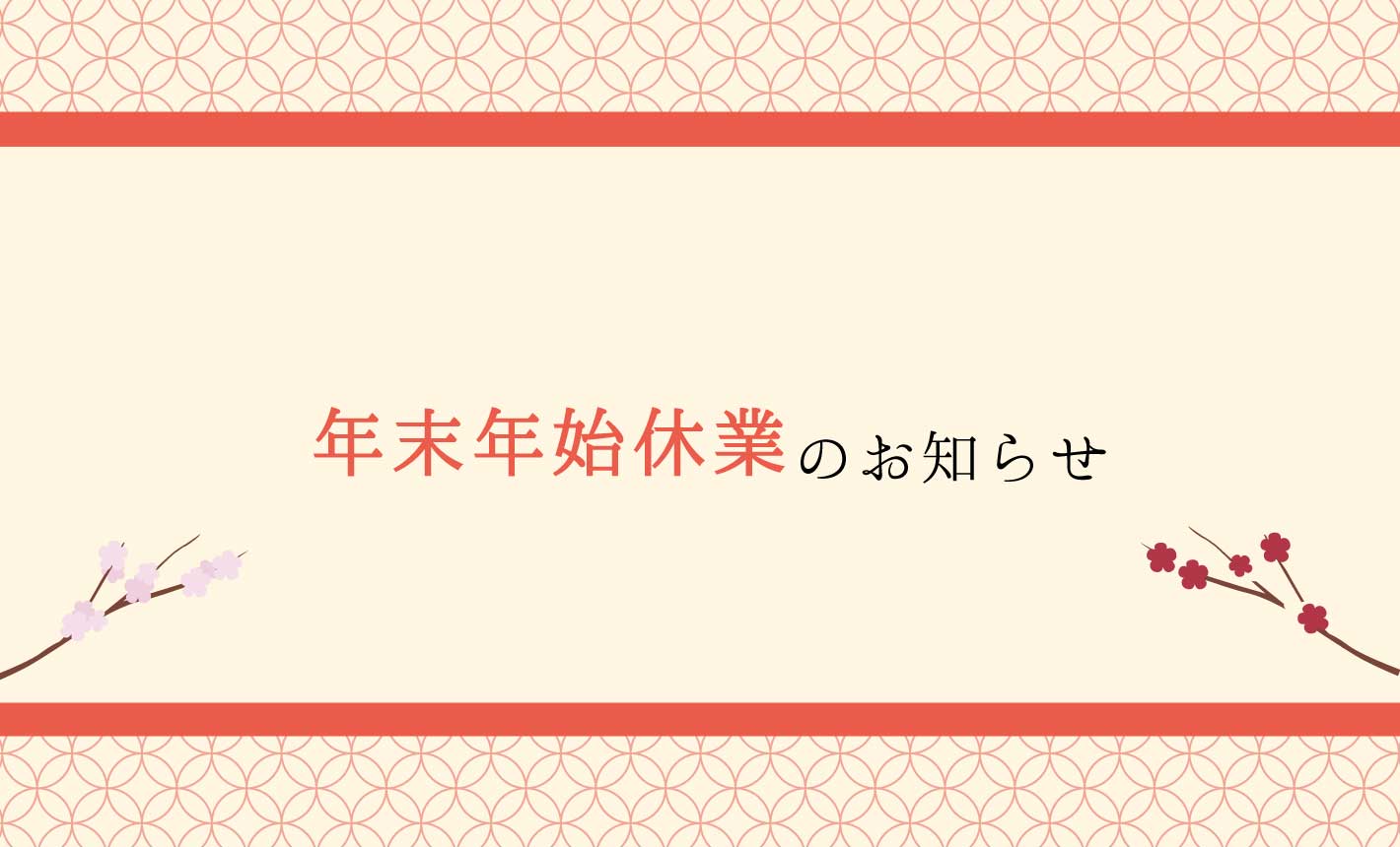 年末年始休業のお知らせ 2025 12/12 news 平素は格別のご愛顧を賜り、厚く御礼申し上げます。誠に勝手ながら、下記日程にて年末年始休業とさせていただきます休業期間2025年12月30日(火)~2026年1月4日(日)1月5日(月)より通常営業いたします。また、メールフォームによるお問い合わせは、休業期間中も受け付けております。12月29日(月)17:00以降にいただいたお問い合わせへの回答は、営業再開日より順次対応させていただきます。皆様にはご不便とご迷惑をおかけしますが、ご了承くださいますようお願い申し上げます。 news 2025クリスマス 2026年 新年のご挨拶